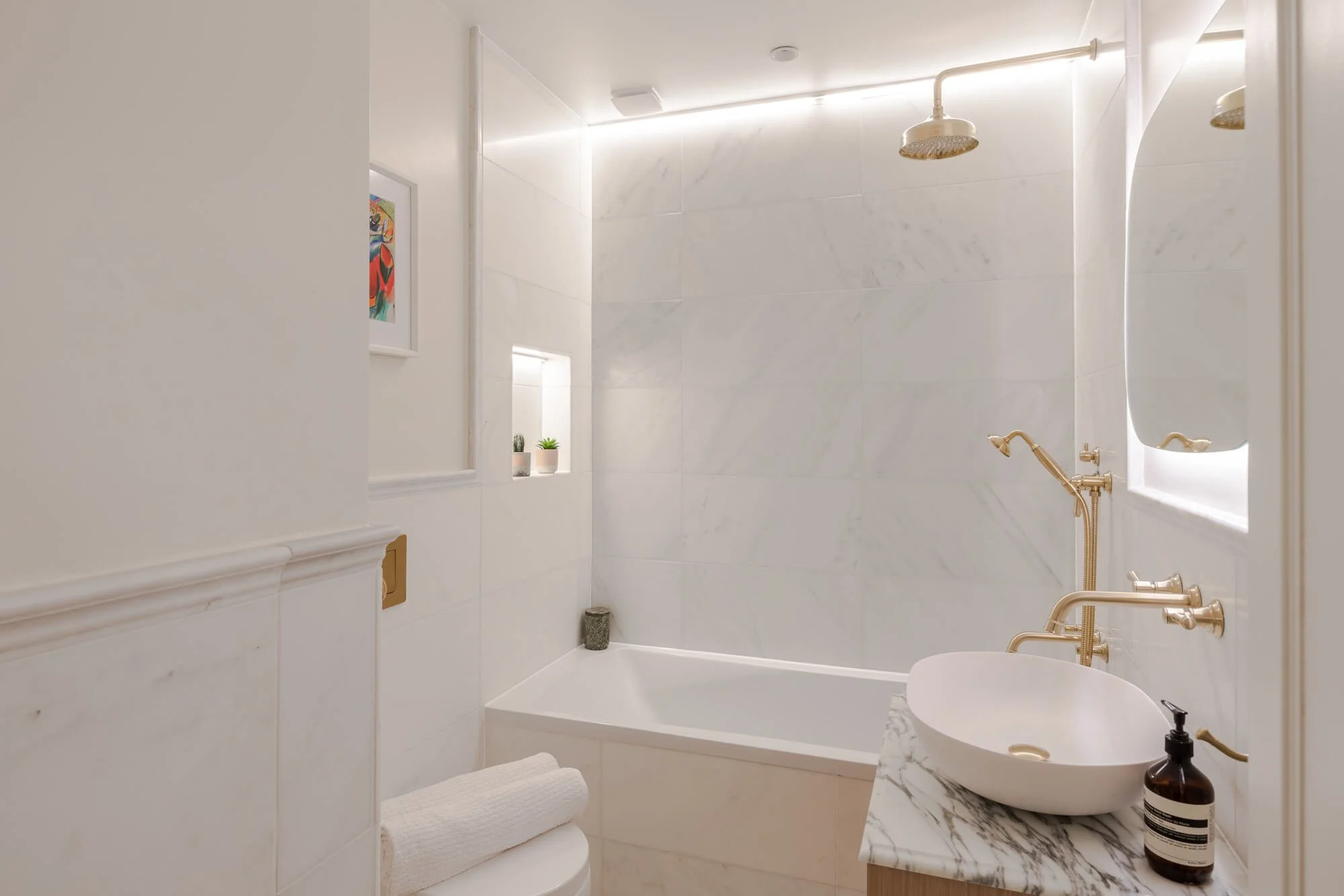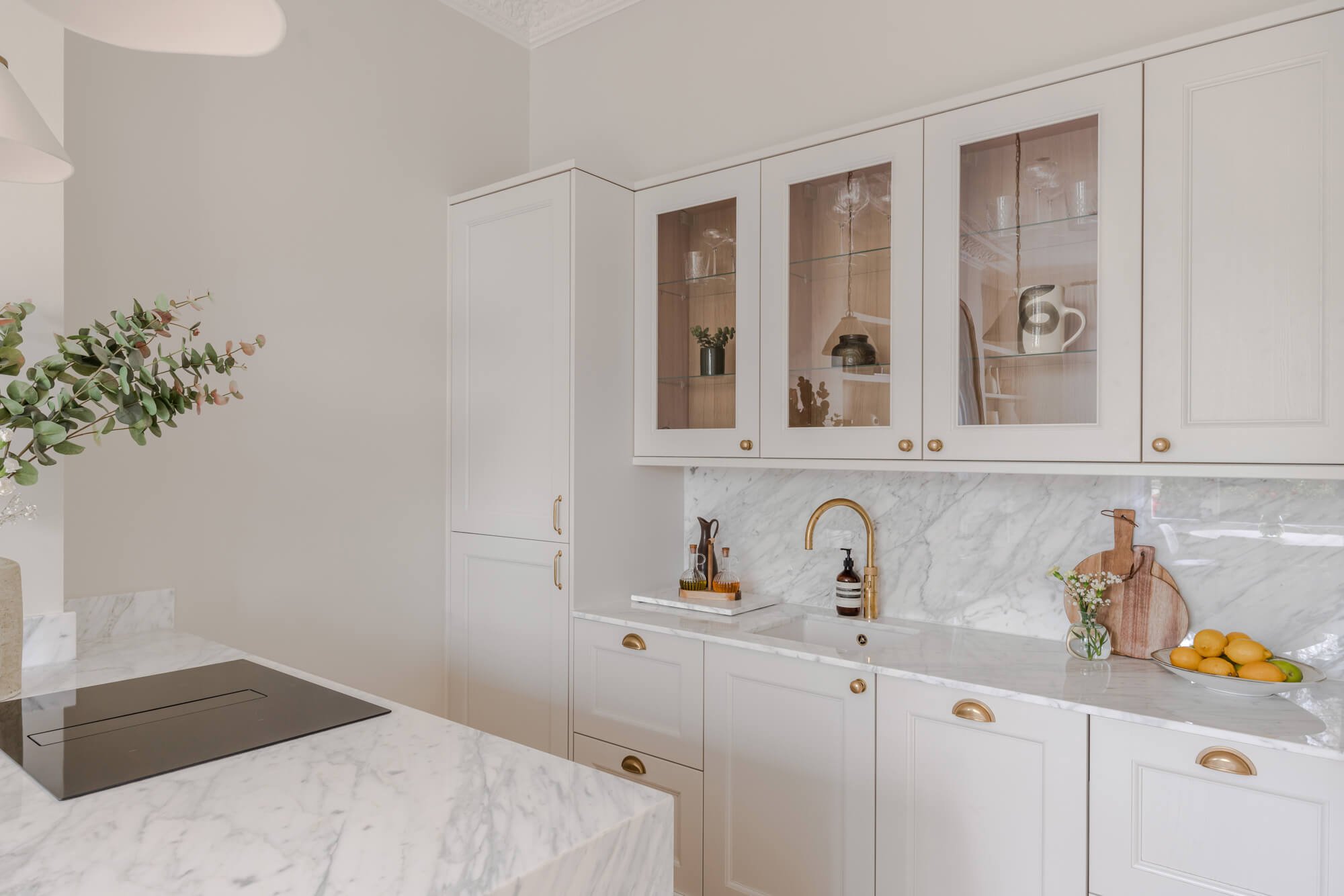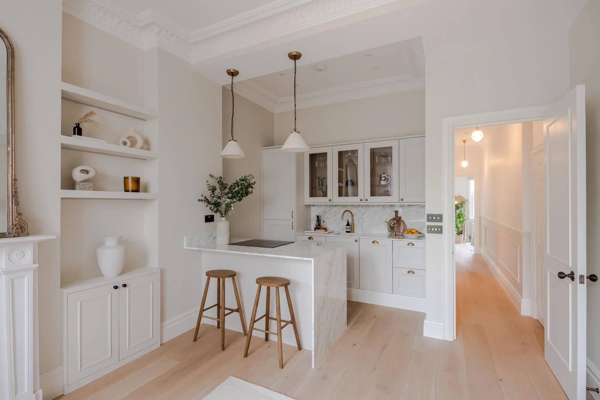 This raised ground-floor apartment forms part of a Victorian terrace in the heart of Notting Hill. Working closely with Westminster’s heritage team, consent was secured to introduce an additional en-suite bedroom and reconfigure the plan to create an open-plan kitchen and reception, carefully framed by the apartment’s original period detailing.